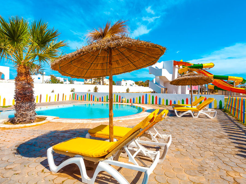 Das Hotel befindet sich im Nordosten von Djerba in der Nähe des berühmten Strand Sidi Mahres (200m Entfernung). Der Ort Midoun mit regelmäßigem Wochenmarkt ist ca. 12km entfernt. Die Hauptstadt Houmt Souk erreichen Sie nach ca. 20km Entfernung. Dort befinden sich zahlreiche Einkaufs- und Unterhaltungsmöglichkeiten. Die Entfernung zum Flughafen Djerba beträgt ca. 28 km.